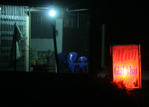 | Trên phố Mai Lâm (huyện Đông Anh) cũng có gần chục quán cà phê đèn mờ nằm ven đường. |