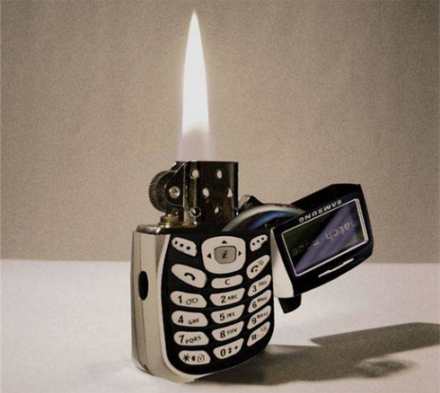 Điện thoại màn hình màu kiêm bật lửa. |