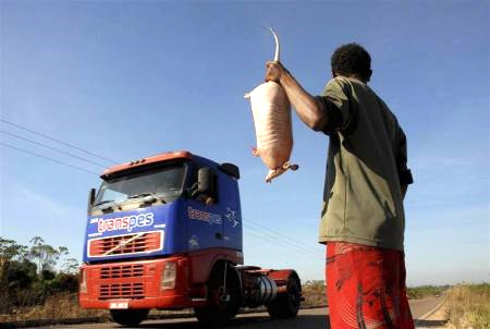 Con tatu (động vật có vú có mai) ở vùng Amazone (thuộc Brazil) được rao bán trên đường. |