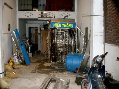 Lò bánh mì bị nổ văng linh kiện khắp nhà. |