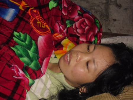 Chị Xoan nằm bẹp dường vì nỗi đau mất con. |
