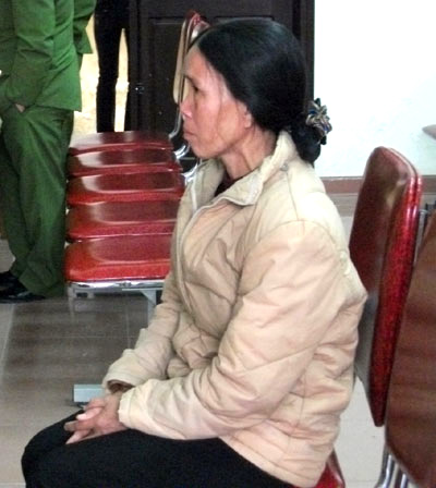 Người mẹ gày gò, khắc khổ ngồi thu lu trên hàng ghế dành cho người nhà bị cáo. |