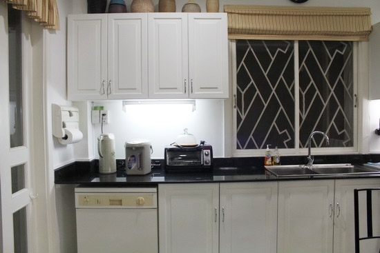 Khu phòng bếp sạch sẽ với tông màu sáng, ngăn nắp và tiện lợi.