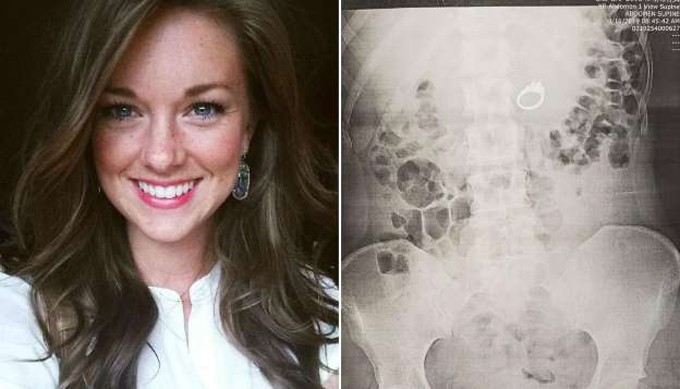 MỹJenna Evans, ở thành phố San Diego, ngủ dậy mới phát hiện mình nuốt nhẫn kim cương và phải phẫu thuật nội soi để lấy nó ra.