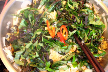 - Rau gia vị: lá lốt, tía tô, hành lá.