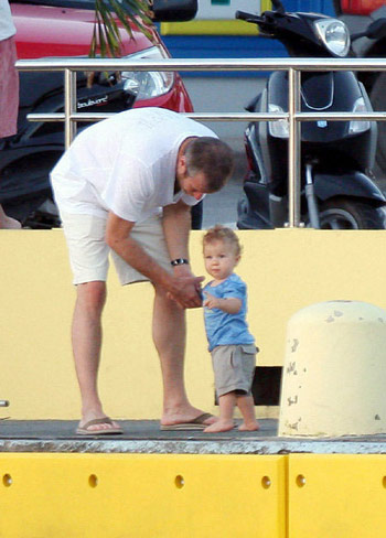 Khác với vẻ đạo mạo của một tỷ phú, Roman Abramovich tỏ ra tươi trẻ và rạng ngời hạnh phúc khi đi chơi cùng cậu con trai.