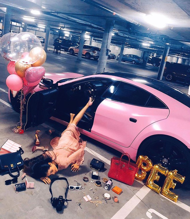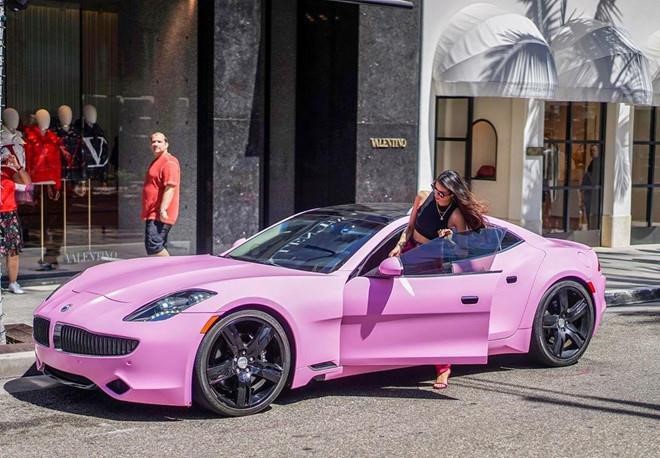Chiếc xe hơi màu hồng sang trọng Phạm Hương đang đi