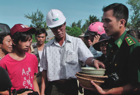 ![]() Đại tá Nguyễn Thanh Trang (người mang áo trắng ở giữa) đang kiểm tra cổ vật. |