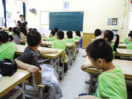 ![]() Một tiết học của học sinh lớp 1 Trường PTCS Thực nghiệm Hà Nội. Ảnh: D.T |