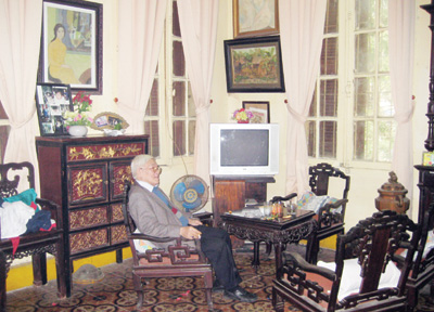 Con trai cố họa sỹ Nguyễn Dung trong phòng vẽ, nơi trước đây các họa sỹ bậc thầy thường lui tới. Ảnh: T.G. |