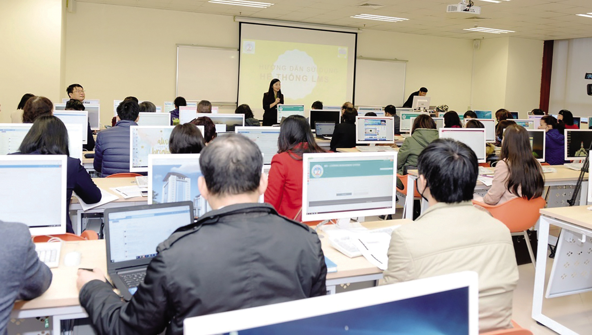 Trường ĐH Kinh tế Quốc dân tổ chức tập huấn để triển khai đào tạo trực tuyến từ ngày 10/2 đối với toàn bộ sinh viên của trường. Ảnh: N.E.U