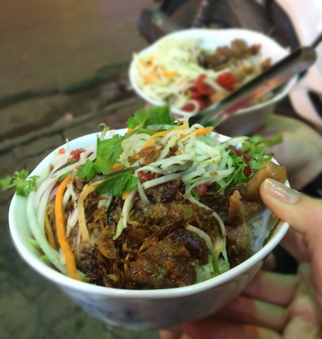 Điểm cộng là hầu hết mọi đồ quán đều tự làm, kể cả hành phi. Nếu đi ngang qua đây buổi sáng sớm, bạn sẽ thấy nhân viên thái từng rổ hành lớn.