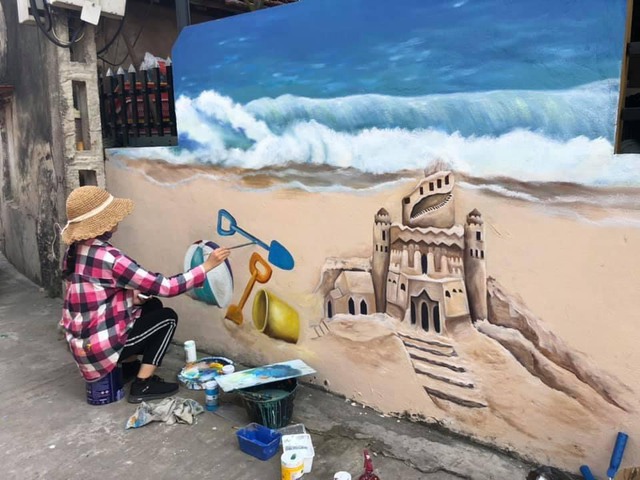Hàng chục bức tranh bích họa 3D được hoàn thiện thể hiện chiều sâu lịch sử văn hóa, tín ngưỡng dân gian, đời sống thường nhật và những hình ảnh bay bổng, lãng mạn về cuộc sống của người dân làng biển Cảnh Dương.
