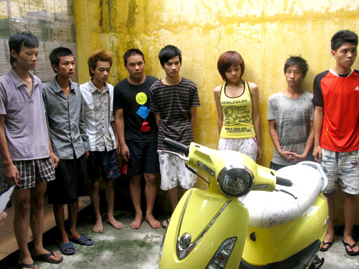 Nhóm thanh thiếu niên bị bắt tại cơ quan điều tra. |