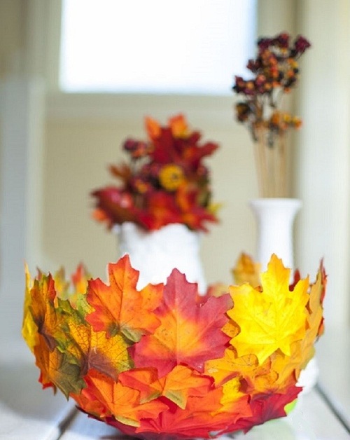 Chỉ cần tận dụng một ít lá màu sắc ngoài vườn hay những bông hoa rụng là bạn đã có thể "tự chế" được chiếc bát đựng đồ siêu xinh yêu này rồi!