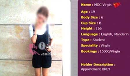 Thông tin cá nhân và mức giá trinh tiết của nữ sinh này được đăng tải rất cụ thể trên trang web của nhóm MyOutCall. |