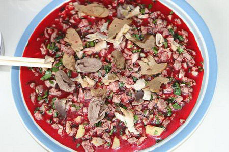 Từ lâu nay, tiết canh đã được coi là một món ăn có nguy cơ cao về thiếu an toàn vệ sinh thực phẩm, nhưng việc một số cơ sở sử dụng cả… phân đạm bón rau làm chất phụ gia giúp tiết đông cứng, giữ màu đỏ tươi là điều mà ít người có thể tưởng tượng được. |