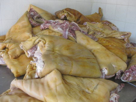 Thịt thú rừng cũng không tránh được nạn “hàng nhái”. Rùng rợn là ở chỗ các sản phẩm này có thể được chế từ thịt lợn “bẩn” mua gom từ các lò mổ hay bán trôi nổi. Đó có thể là thịt ế đã bị ôi, thịt lợn bệnh, lợn chết có giá rẻ như cho. Các nguyên liệu này được đem về nhúng vào nước pha chất tẩy, ướp “hương vị” các loại theo ý muốn như bò, nai, chồn, cho vào lò sấy khô với nhiệt độ cao để tạo mùi, tạo độ dai như thật. Thịt lợn rừng được làm giả công phu hơn với việc dùng cây kim ba mũi tự chế được đóng chặt vào một chiếc đũa tre châm vào da để tạo ra những lỗ châm lông chụm 3 đúng như lợn rừng “xịn”. |