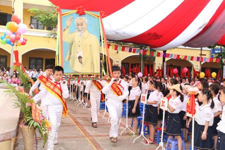 ![]() Rước ảnh Bác Hồ tại lễ khai giảng Trường tiểu học Khương Thượng (Hà Nội). Ảnh: Chí Cường |