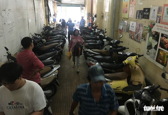 Còn tại chung cư 42, Nguyễn Huệ chỉ có một lối thoát hiểm duy nhất. Tuy nhiên, lối thoát hiiểm này lại đang được sử dụng làm bãi giữ xe. Tại khu vực này cũng chứa nhiều đồ dễ cháy nên ông Hải yêu cầu phường Bến Nghé phải giải tỏa bãi xe này ngay.