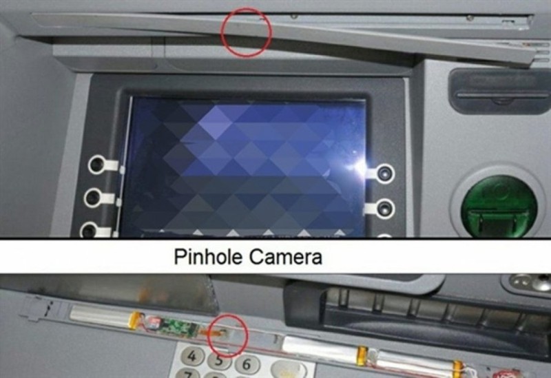Để đánh cắp mã PIN của khách hàng, bọn tội phạm còn lắp đặt thêm một camera siêu nhỏ trên máy ATM, camera có thể gắn ở bất kỳ chỗ hỏng nào hòng quay lén và lấy được mã PIN khi khách đăng nhập để rút tiền.
