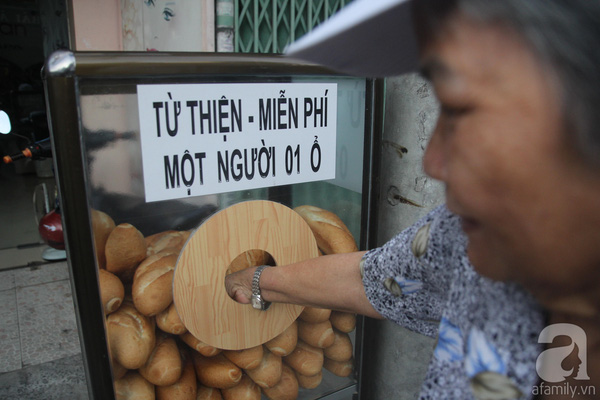 Điều đặc biệt là đây là bánh mì , miễn phí. Ai cũng có thể lấy ăn, nhất là những người mưu sinh nghèo.