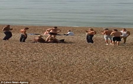 Trong khi đó, vài người đàn ông tỏ ra tò mò và tiến lại gần để quay phim chụp ảnh cảnh tượng ái ân này. Một trong số đó còn ngỏ ý muốn “nhập cuộc”. Tuy nhiên, trước sự chứng kiến của rất nhiều người, trong đó có cả trẻ em, cặp đôi vẫn quấn lấy nhau một cách trơ trẽn trên bãi cát.