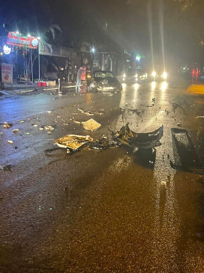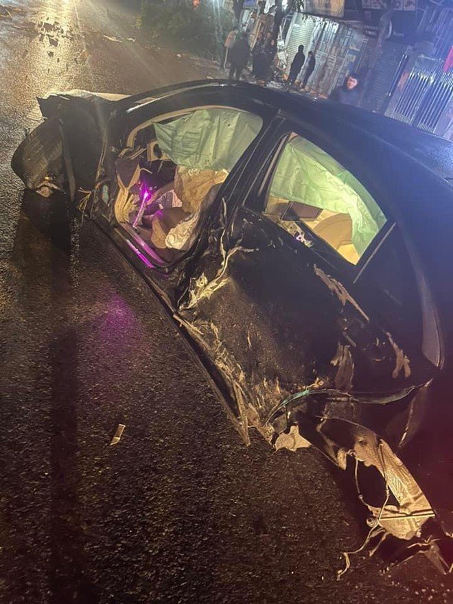 Tại hiện trường cho thấy, chiếc xe ô tô Maybach mang biển kiểm soát 34A-51737 bị biến dạng, phần thân xe vỡ nát, bung cả bánh phía sau. Cây cột điện ở gần đó bị húc gãy đôi, cây cối đổ rạp xung quanh, cảnh tượng tan hoang.