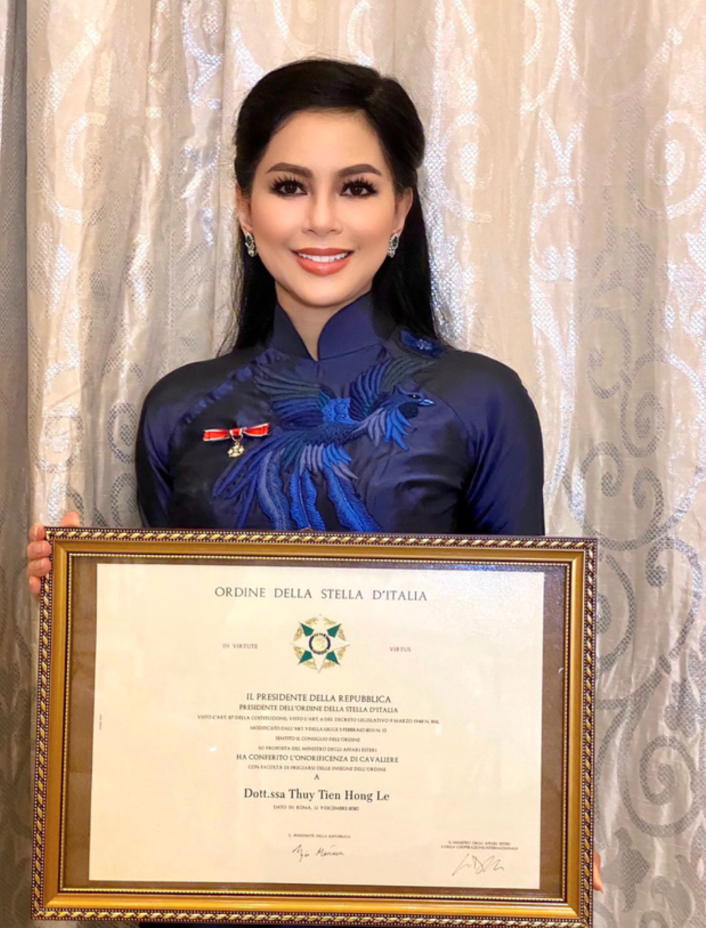 Mới đây, bà Thủy Tiên khiến dân tình thêm nể khi đại diện tập đoàn của gia đình nhận tước hiệu Hiệp sĩ do Tổng thống Cộng hoà Italy trao tặng.