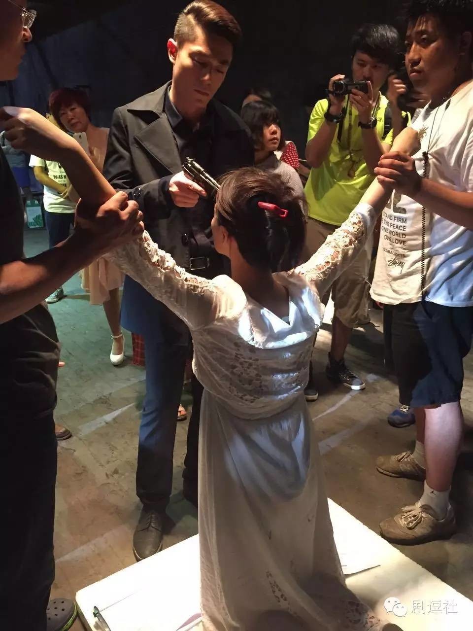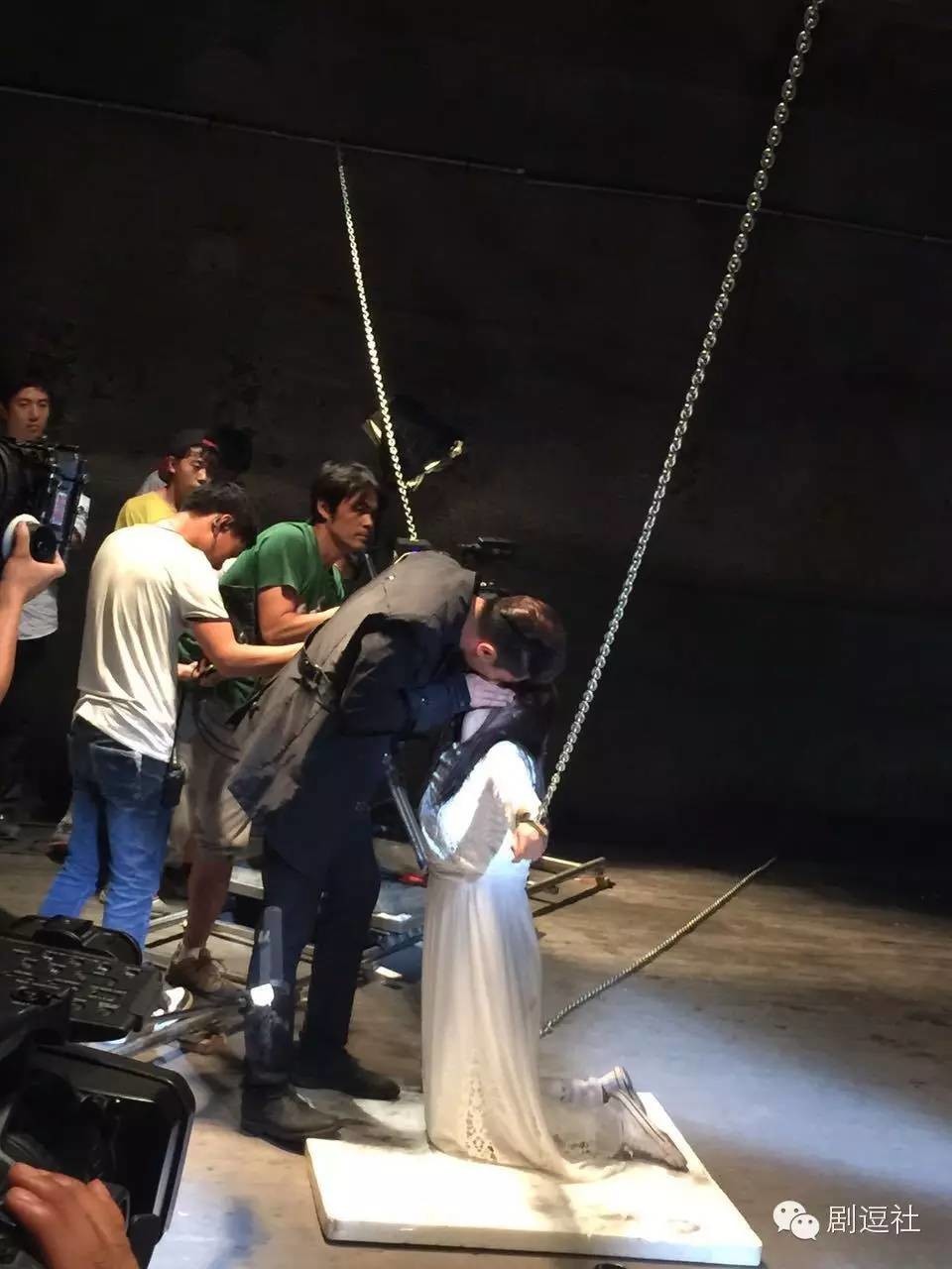 Nhưng phía sau ống kính, có thể thấy Mã Tư Thuần quỳ trên tấm xốp trắng. Quay phim còn cố tình đặt máy quay sát gương mặt hai diễn viên.