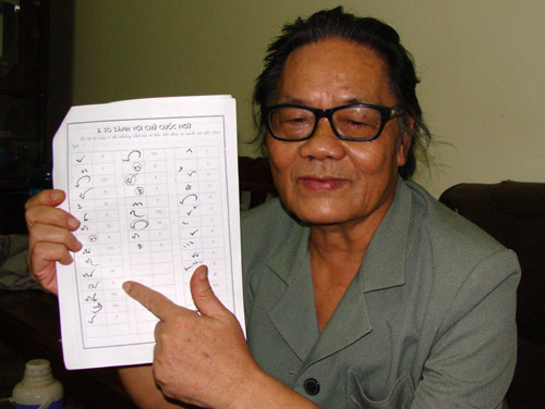 Ông giáo Đỗ Văn Xuyền và tài liệu giải mã chữ Việt cổ. |