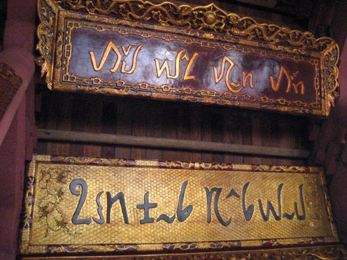 Hoành phi được khắc chữ Việt cổ do thầy giáo Đỗ Văn Xuyền thực hiện. |
