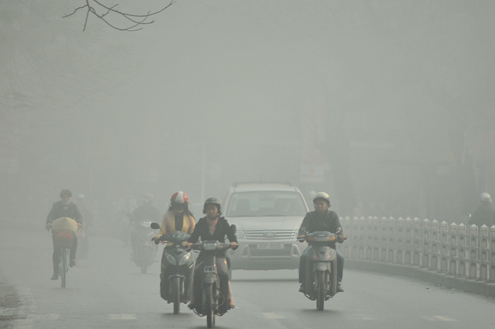 Sáng nay, sương mù dày đặc xuất hiện dày khiến đường phố thủ đô phủ một màu trắng đục, không thấy rõ nhà cửa, xe cộ phía xa.