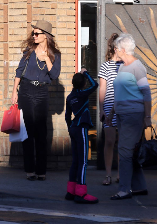 Suri đã có ngày cuối tuần dạo chơi ở Venice, California cùng mẹ và bà ngoại. Hai mẹ con ton sur ton với bộ đồ bó màu đen.