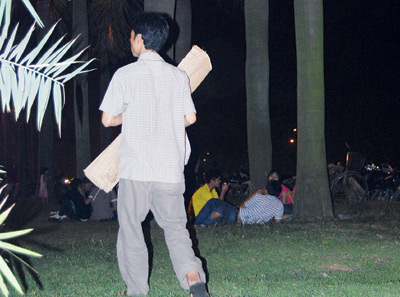 Một người tẩm quất dạo tên Hoàng, quê ở Ứng Hòa, Hà Nội bật mí, do khách hàng đến đây chủ yếu là đối tượng trẻ nên chỉ cần chịu khó “chai mặt” một chút là mỗi đêm cũng kiếm ngót ngét 200.000 đến 250.000 đồng. Mới đầu thấy việc chèo kéo cứ như “ép buộc” khách nên cũng hơi ngại nhưng bây giờ lâu thành quen. Vì đồ nghề chỉ có mỗi manh chiếu và một túi xách nên việc di chuyển từ chỗ này sang chỗ kia không khó khăn gì, công an đuổi cũng không hề hấn gì.