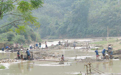 Dòng sông Nặm Chạ Hạ hằng ngày có đến gần cả trăm người ở hai xã Yên Na và Yên Hòa khai thác vàng. |