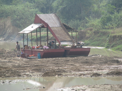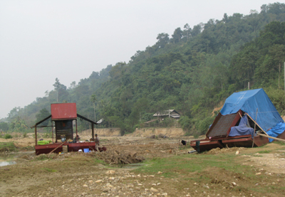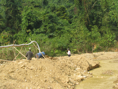Nhà thầu này lợi dụng đắp, nắn dòng chảy của dòng dòng Nặm Chạ Hạ để khai thác vàng. |