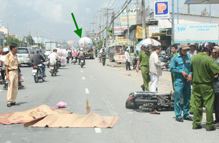 Theo nhiều nhân chứng thuật lại, chiếc xe gắn máy do anh Hà Minh Mẫn (45 tuổi ngụ Q.8) cầm lái chở theo vợ là chị Phạm Thị Thu Nga (42) và con gái Hà Thanh Tuyền (8 tuổi) di chuyển theo hướng Long An, trên đường về quê.