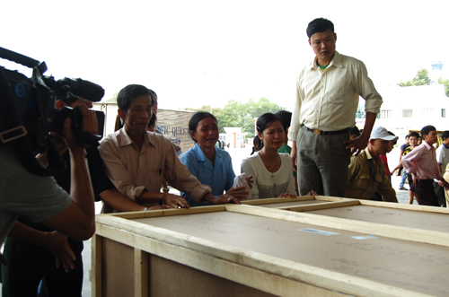 Khoảng 10h15, 9 thi thể còn lại, được đựng trong các quan tài gỗ, đến trước sảnh kho K2. |