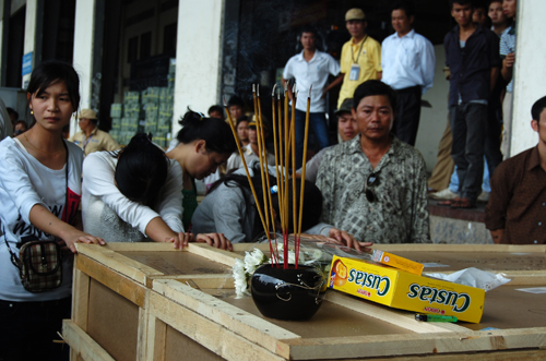 Những người có trách nhiệm làm thủ tục liên quan đến tro cốt của 5 nạn nhân. |