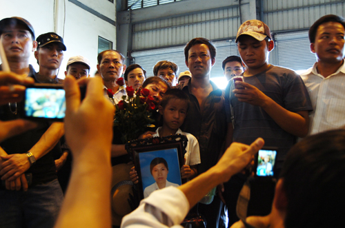 Từ rạng sáng, người nhà nạn nhân đã có mặt tại cảng hàng không Nội Bài để đón người thân. Cơ quan chức năng cũng chuẩn bị phương tiện để vận chuyển di hài người xấu số. |