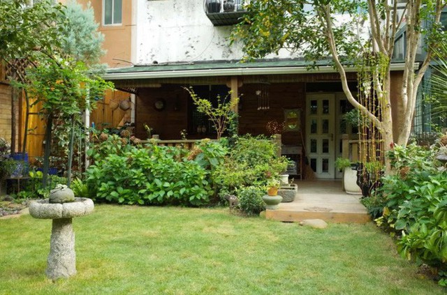 Ngôi nhà còn có khoảng vườn thật đẹp rộng 140m². Vườn được chia làm 3 phần, vườn phía trước rộng khoảng 30m², phía Bắc ngôi nhà có khu vườn rộng 100m² và phần mái nhà được tận dụng để làm vườn rộng 13m². Mỗi một góc nhỏ đều được chị Chen thiết kế ấn tượng, gọn gàng, đầy nét đẹp nghệ thuật tinh tế.