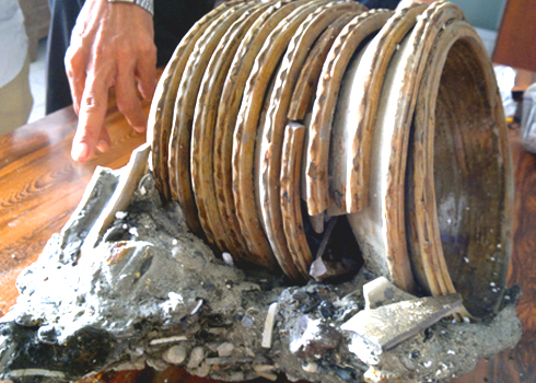 Căn cứ vào lớp xỉ màu đen như than trên chồng tô men nâu và vết dính trên đồng tiền bị cháy, nhiều khả năng tàu này gặp hỏa hoạn.