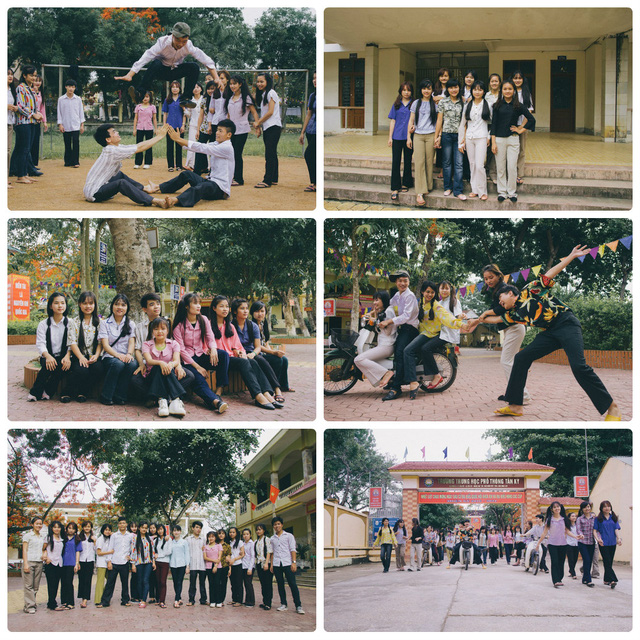 Bộ ảnh được đầu tư kỹ lưỡng với khâu đầu tư trang phục cẩn thận. Tất cả đều được các bạn học sinh mượn của ông bà, bố mẹ để hóa trang, thậm chí các em còn xem lại ảnh của người lớn để diễn cho đúng phong thái của những năm 90.