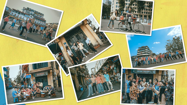 Phong cách hoài cổ tiếp tục được các em khai thác triệt để. Thay vì khuôn viên trường, các em chọn những địa điểm mang dấu ấn Hà Nội để thực hiện bộ ảnh kỷ yếu độc đáo này.