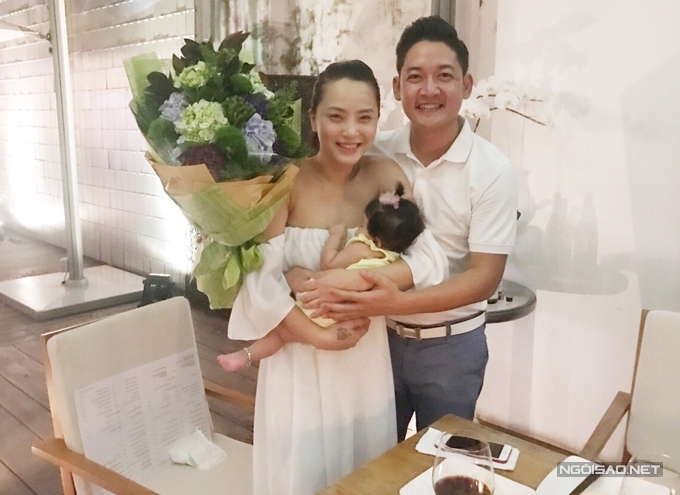 Bé Kem ngủ say sưa trong tay mẹ. Sau những sóng gió, Hải Băng và Thành Đạt hạnh phúc với tổ ấm hiện tại.