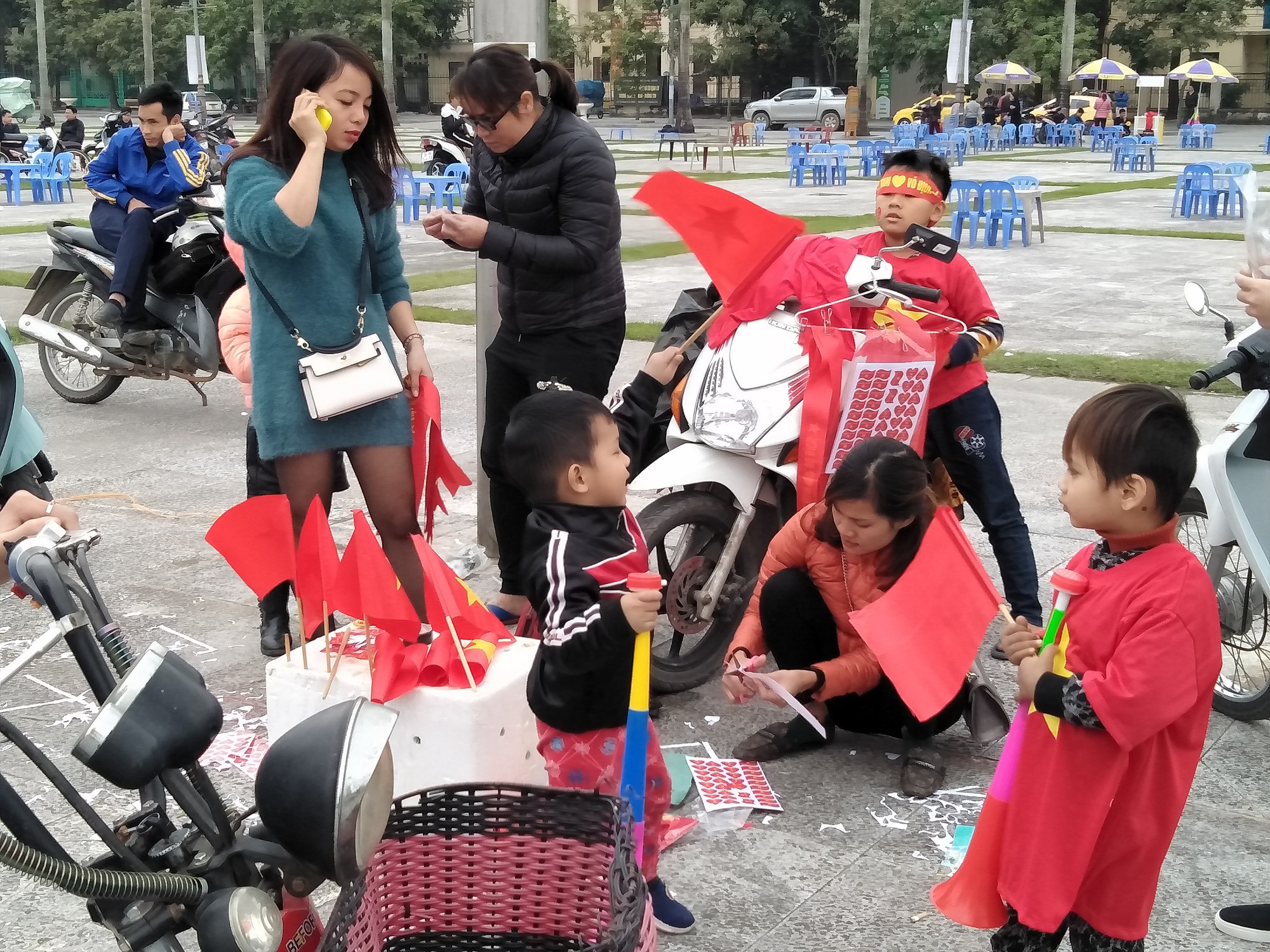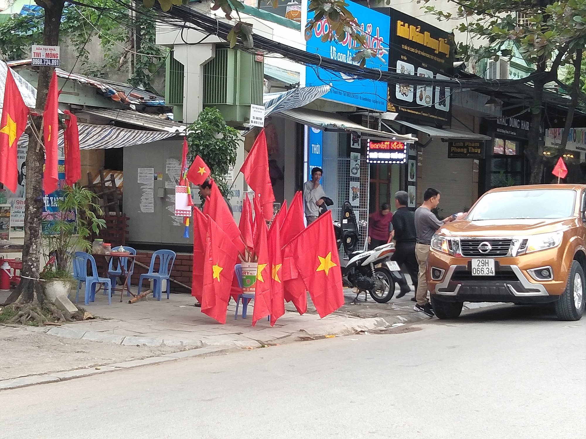 Tại các tuyến đường tại Thành phố Thanh Hóa, cờ tổ quốc, áo, băng zôn.. bày bán la liệt, không khí đang bắt đầu nóng lên, người dân đổ ra đường mua cờ, băng zôn, chuẩn bị kéo về quảng trường Lam Sơn để cổ vũ cho đội tuyển Việt Nam với một một tin chiến thắng