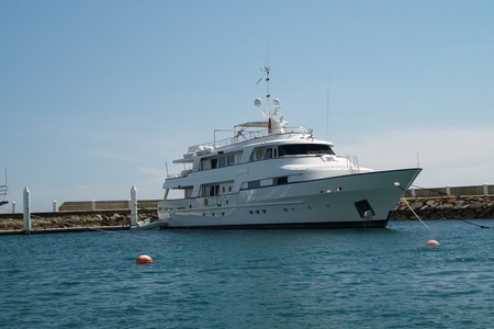 Một du thuyền lớn đang đậu trong cảng. |