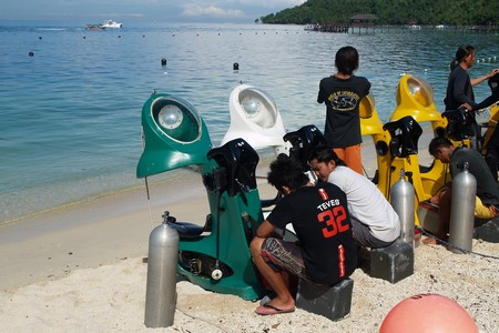 Dịch vụ cho thuê tàu ngầm mini để du khách tham quan dưới biển. |