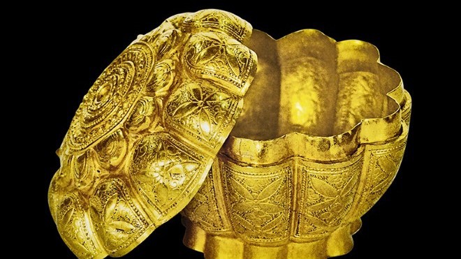 16. Hộp vàng Ngọa Vân - Yên Tử (Niên đại: Thế kỷ XIV, hiện lưu giữ tại Bảo tàng tỉnh Quảng Ninh).